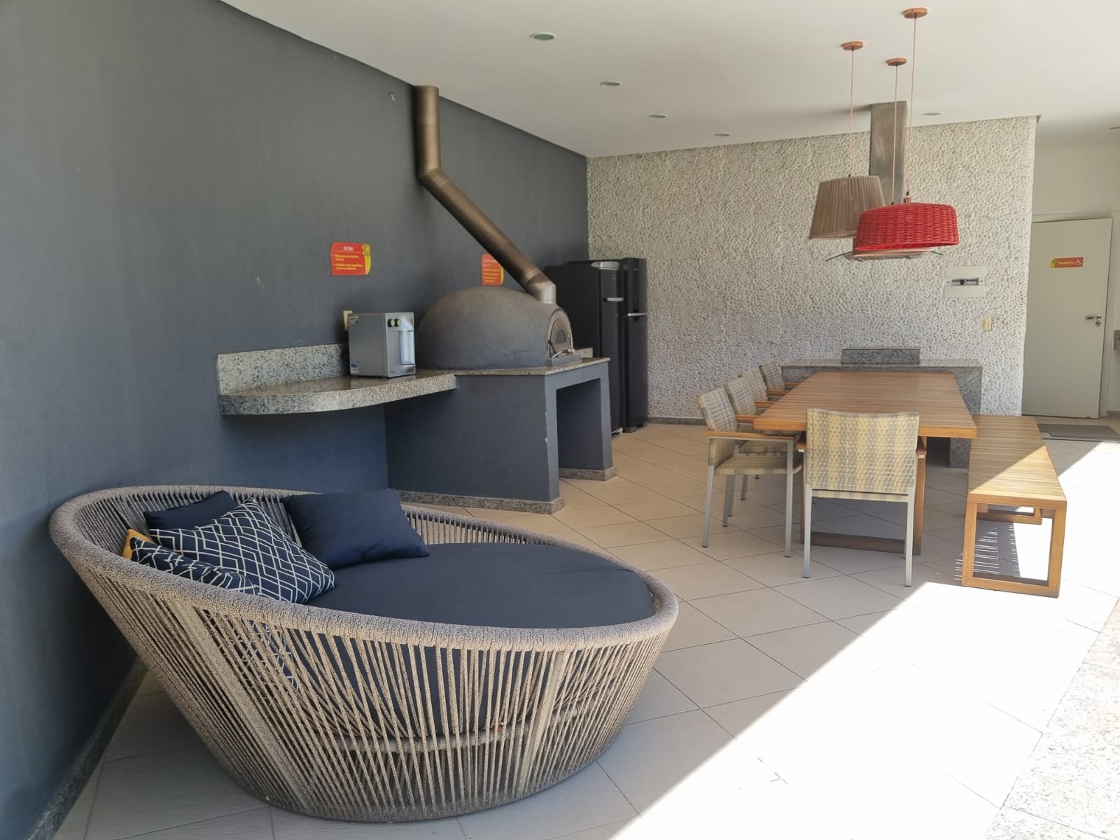 - Áreas gourmet equipadas (mescladas entre churrasqueira e forno de pizza)